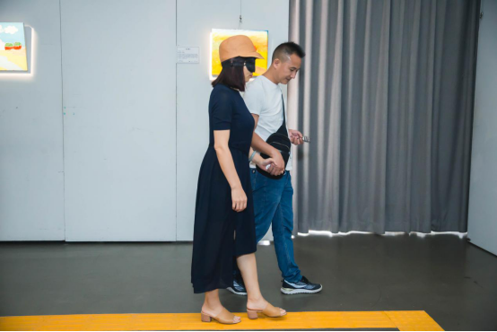 公益,不是你想做什么,而是你能做什么。為了讓觀眾深切感受視障群體生活,進入畫展后,工作人員首先會為參展人戴上眼罩,將其代入視障人士角度,并全程由工作人員引領,感受盲胞畫作、體驗盲道。很多觀眾帶著好奇的心態(tài)戴上眼罩,但卻發(fā)現(xiàn)很不習慣甚至有些恐慌,平時用幾分鐘就能欣賞完的畫作現(xiàn)在則需要幾倍的時間來“看”,看不到周圍的物體一步都走不動,在盲道上一點一點“探路”…主辦方希望通過這種方式,讓觀眾親身體驗視障人士生活,理解他們的難處,喚起大家的愛心和關注。