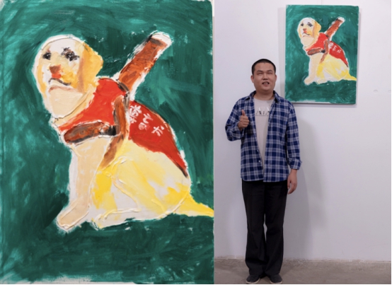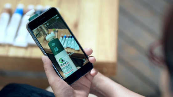 據(jù)畫展負責人介紹,在視障畫家創(chuàng)作過程中,科技的助力讓創(chuàng)作更加便捷。例如,在視障畫家作畫的過程中,使用手機QQ“掃一掃”,就可以對繪畫顏料包裝文字進行識別并語音播報,這對于他們辨別顏料色彩有很大的幫助。
