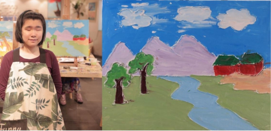 除了在每幅畫作的旁邊可以看到作者的名字、年齡、障礙類型以及畫作介紹,本次畫展還邀請觀眾觀看盲胞繪畫紀錄片,深入了解盲胞畫作誕生的過程,親身感受視障群體的生活日常。