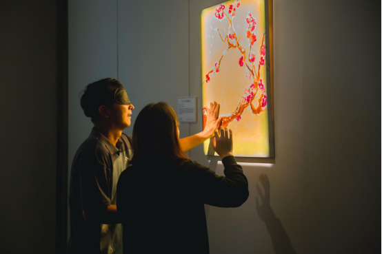 現(xiàn)場觀眾蒙眼體驗盲胞畫作及盲道