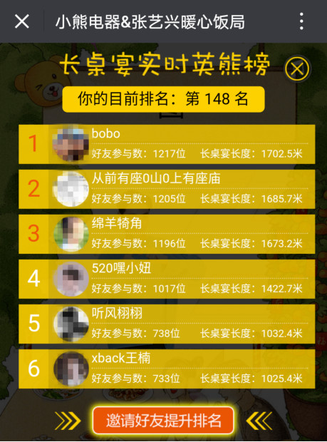 當(dāng)下繁忙的生活節(jié)奏,人們有心想與朋友知己常常相聚卻難以抽空。近日,小熊電器從消費(fèi)者痛點(diǎn)切入,借勢(shì)春節(jié)團(tuán)聚的熱點(diǎn),攜手張藝興發(fā)起線上暖心盛宴,邀請(qǐng)粉絲共赴暖心飯局。H5一經(jīng)上線,隨即受到用戶的熱捧,超過18萬的用戶關(guān)注了活動(dòng),更有數(shù)萬的人發(fā)起了自己的暖心飯局,邀約好友線上一聚,最長飯局竟突破了1700米,引發(fā)了刷屏。