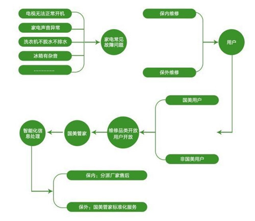 國(guó)美管家基于家電銷(xiāo)售信息數(shù)據(jù)的跟蹤,將通過(guò)智能化手段區(qū)別家電保內(nèi)和保外維修,運(yùn)用技術(shù)手段實(shí)現(xiàn)家電售后服務(wù)接入互聯(lián)網(wǎng)服務(wù)場(chǎng)景,加之標(biāo)準(zhǔn)化服務(wù)管控過(guò)程,顧客通過(guò)國(guó)美管家平臺(tái)提交維修訂單,平臺(tái)自主識(shí)別保內(nèi)保外訂單,將保內(nèi)訂單自動(dòng)轉(zhuǎn)派至廠(chǎng)家售后,保外訂單轉(zhuǎn)派國(guó)美管家售后,讓消費(fèi)者省心的同時(shí)還能享受到專(zhuān)業(yè)、標(biāo)準(zhǔn)化的服務(wù)水平及最佳的解決方案。
