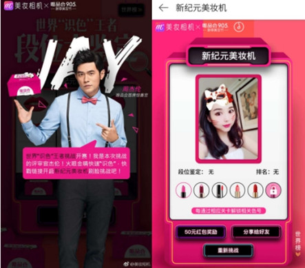 在線上,美妝相機(jī)與唯品會(huì)聯(lián)合推出一場(chǎng)世界“識(shí)色”王者段位大鑒定,用戶(hù)參與H5口紅試色大挑戰(zhàn),在通過(guò)段位考驗(yàn)之后,即可解鎖不同色號(hào)的口紅。