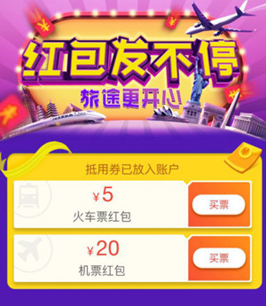??在春節(jié)期間,營銷的主題有:回家、春運、團圓、幸福、送福、祝福等洋溢的春節(jié)氣息的主旋律,不妨好好對春節(jié)活動主題細細打磨,再結合獎品,給用戶最貼心的福利優(yōu)惠。如美團在春節(jié)期間,為美團用戶發(fā)起“紅包送不停,旅途更開心”活動,用戶可領取火車票或機票紅包用于春運,用戶場景更精準,獎品直接觸達用戶痛點。