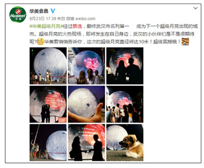 食品企業(yè)是非常傳統(tǒng)的行業(yè),中秋也是非常傳統(tǒng)的節(jié)日,如何玩出新花樣又不失傳統(tǒng)內(nèi)涵?華美食品在七夕前后,在線(xiàn)下將“超級(jí)月亮”安放在了深圳、武漢、佛山三個(gè)城市,率先引起了圍觀和討論。