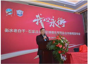 石家莊永昌足球俱樂部常務(wù)副總經(jīng)理兼技術(shù)總監(jiān)李金羽在講話中也提到:2014年俱樂部正式更名為石家莊永昌足球俱樂部,當(dāng)年以中甲聯(lián)賽亞軍的身份獲得年中國(guó)足球超級(jí)聯(lián)賽的參賽資格,成為河北足球史上首支登上中國(guó)頂級(jí)職業(yè)聯(lián)賽的球隊(duì),是河北的驕傲。在俱樂部的升班元年,球隊(duì)取得了不錯(cuò)的戰(zhàn)績(jī),吸引了河北乃至全國(guó)企業(yè)的青睞。衡水老白干是河北白酒的代名詞,同樣也是河北的驕傲,我們與衡水老白干攜手是因?yàn)槲覀冇兄餐陌l(fā)展目標(biāo),要做各自行業(yè)里河北領(lǐng)域的標(biāo)桿,并在全國(guó)領(lǐng)域占得一席之地。