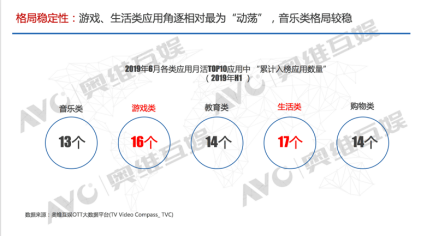 ??【變化4-頭部應(yīng)用競爭加劇】從格局穩(wěn)定性來看,2019年上半年,五大類應(yīng)用中進(jìn)入過各月TOP10月活榜的應(yīng)用總量均值13.8個,生活、游戲入榜應(yīng)用數(shù)量最多,分別為17個、16個應(yīng)用,競爭最為激烈。從單品沖擊量來看,音樂、游戲、生活類頭部更迭劇烈,2019年H1入榜的應(yīng)用總量均為9個,新品集中沖擊TOP1-5頭部席位。