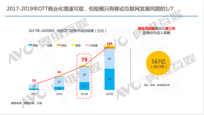 ??至2019年,大屏商業(yè)化進(jìn)入到第三年。預(yù)計今年年底大屏垂直類業(yè)務(wù)商業(yè)化變現(xiàn)收入有望達(dá)到79億元人民幣,商業(yè)化增速可觀。不過我們橫向?qū)Ρ纫苿踊ヂ?lián)網(wǎng)發(fā)展至第三年頭的收入規(guī)模,大屏端尚只有移動端的1/7。大屏與移動收入規(guī)模的差異,是差距也是潛力。