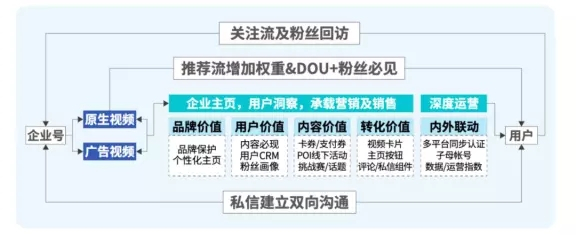 在轉(zhuǎn)化價值層面,抖音藍V提供視頻入口、主頁入口、互動入口等三大轉(zhuǎn)化路徑,實現(xiàn)“種草-轉(zhuǎn)化”的閉環(huán)結(jié)構(gòu),促進決策提升。