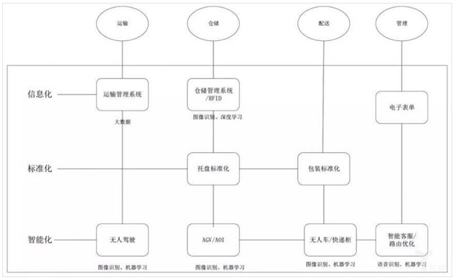 ??5G移動(dòng)通信技術(shù)、物聯(lián)網(wǎng)、大數(shù)據(jù)、云計(jì)算、人工智能、以及區(qū)塊鏈等前沿科技將構(gòu)成新一代物流技術(shù)體系。隨著技術(shù)的快速產(chǎn)品化,成本的指數(shù)級(jí)下降,政策的鼓勵(lì),中國(guó)物流行業(yè)將迎來全面智能化時(shí)代。人工智能作為引領(lǐng)未來的戰(zhàn)略性技術(shù),在豐富的應(yīng)用場(chǎng)景和海量的數(shù)據(jù)支撐下,可望引領(lǐng)新一代物流技術(shù)的發(fā)展方向。