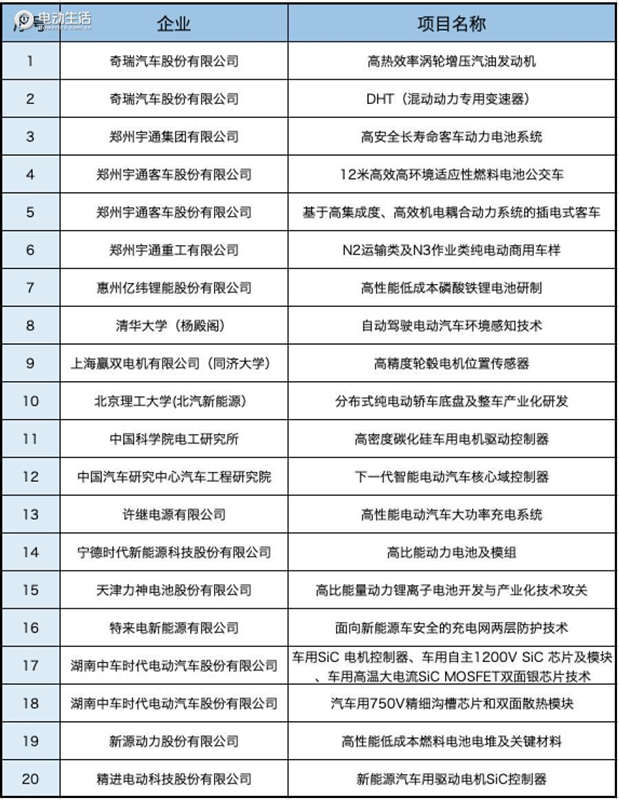 科技部是本次大會(huì)的支持單位,在新能源汽車(chē)重點(diǎn)專(zhuān)項(xiàng)項(xiàng)目辦公室的組織征集下,共遴選出15家企業(yè)的20項(xiàng)“十三五”新能源汽車(chē)專(zhuān)項(xiàng)標(biāo)志性成果進(jìn)行展示,具體成果展示的企業(yè)及項(xiàng)目名稱(chēng)如下: