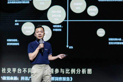 騰訊廣告高級品牌公關(guān)總監(jiān)楊維佳在2019金瞳內(nèi)容盛典現(xiàn)場分享(圖片來源:視覺中國)
