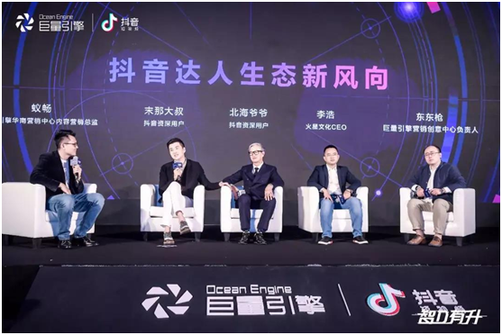 論壇最后的圓桌環(huán)節(jié),蟻暢還邀請了抖音資深用戶@末那大叔與@北海爺爺,火星文化CEO李浩,巨量引擎營銷創(chuàng)意中心負責人東東槍,圍繞抖音垂類達人生態(tài),共同探討短視頻營銷進化及升級的新思路。