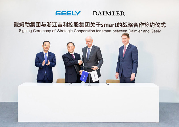 戴姆勒股份公司董事會主席兼梅賽德斯-奔馳汽車集團全球總裁蔡澈博士表示:“在smart品牌多年成功經驗的基礎上,我們期待與在電動車細分市場上具有雄厚實力的吉利控股進行合作,共同設計、研發(fā)下一代smart電動車型。新一代產品將融合高品質的生產制造及廣受認可的安全水準,將在中國市場及全球進行銷售。此外,梅賽德斯-奔馳未來將在現smart的漢巴赫工廠生產緊湊型電動汽車,進一步投資于升級設備并保持現有員工的就業(yè)?!?