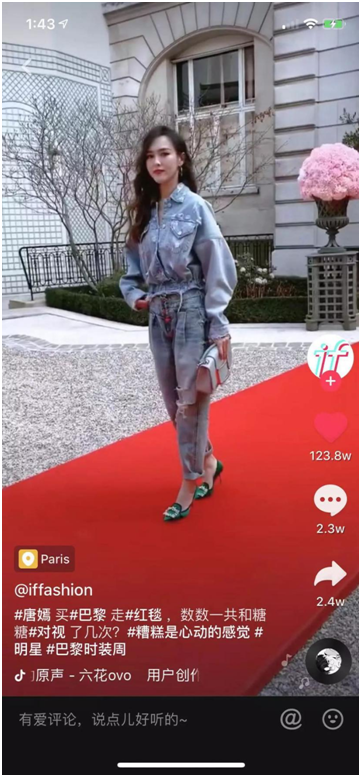 大家可以在一些明星的抖音視頻上去看一下,幾乎在每條視頻下面,都會(huì)有關(guān)于這位明星衣著穿搭的品牌詳解。海量的用戶(hù)基數(shù),強(qiáng)大的曝光量,很容易讓一些大牌的產(chǎn)品,成為時(shí)尚焦點(diǎn)和流行爆品,產(chǎn)生巨大的商業(yè)價(jià)值,也讓抖音成為目前時(shí)尚乃至奢侈品牌最重要的營(yíng)銷(xiāo)平臺(tái)。