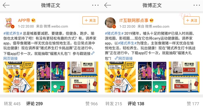 在微博上,選取了APP種草類微博進(jìn)行活動及產(chǎn)品推廣,實現(xiàn)了直接有效的下載轉(zhuǎn)化;