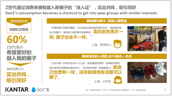 “獨(dú)一代”的Z世代看重來自于家庭以外的社交圈層,而繁重的課業(yè)壓縮了他們的社交時(shí)間,這也意味著他們追求更高效的社交方式,比如消費(fèi)。消費(fèi)行為即“社交貨幣”,有了消費(fèi)就等同于手持踏入某個(gè)社交圈的“門票”,也才會(huì)擁有維系社交關(guān)系的資本,65%的Z世代期待與朋友們擁有共同的語言。