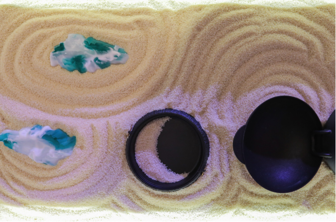 《枯山水》藝術(shù)裝置由曾輝利用黑色鐵鍋與白色大米為主體進(jìn)行創(chuàng)作,黑與白強(qiáng)烈的視覺(jué)反差能將你帶入奇妙的意象中。其中,作為創(chuàng)作材料的炊大皇32cm等離子炒鍋吸引了大批觀眾圍觀。這款明星炒鍋鍋體表面的高顆粒磨砂質(zhì)感來(lái)自于等離子噴涂技術(shù),擁有十倍耐磨性能的同時(shí)還非常輕巧,僅有2瓶礦泉水的重量,美廚娘們都可以輕松掌握,任意翻炒。