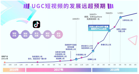 我們?cè)诤芏鄨?chǎng)合都分享過(guò)抖音的增長(zhǎng)路徑曲線。抖音從最開始在非常能夠接受創(chuàng)新、有勇氣嘗試新事物的一二線城市年輕人中間的一個(gè)音樂(lè)短視頻社區(qū),非??焖俚爻砷L(zhǎng)為被全網(wǎng)用戶喜愛(ài)、平均每天有2億國(guó)內(nèi)用戶使用的大眾短視頻平臺(tái);從最開始大家認(rèn)為的只是一個(gè)視頻拍攝和分享的工具,非常快速地變化成了具備社會(huì)影響力的大平臺(tái)。