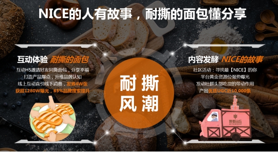 率先引入“軟歐包”的原麥山丘,在吃法上玩出自己的創(chuàng)意,倡導(dǎo)“手撕”打開方式,并將“分享”的品牌理念通過產(chǎn)品傳遞給消費(fèi)者,增加消費(fèi)者和原麥山丘的情感連結(jié)。其從H5互動體驗(yàn)“耐撕的面包”,到美團(tuán)點(diǎn)評尋找“NICE的故事”,滿足了年輕人“愛分享”的社交心理,吸引眾多的年輕人分享。