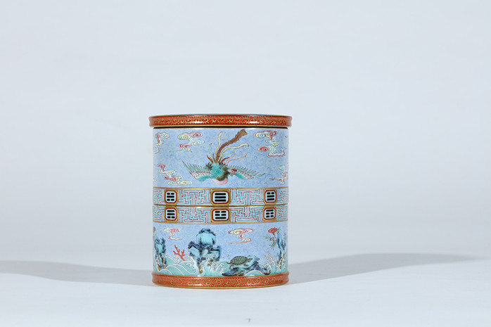 “清乾隆 御制洋彩 ‘江山一統(tǒng)’八卦玲瓏旋轉(zhuǎn)筆筒”