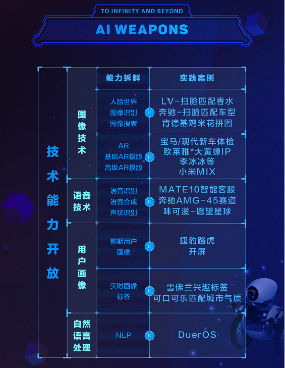 “百度AI營銷創(chuàng)想季”是百度全年重要商業(yè)盛事之一。為此,百度準(zhǔn)備了億級創(chuàng)意孵化金,并為參賽者開放100余項AI技術(shù),提供免費AI技術(shù)支持及Omni Marketing平臺的使用權(quán)限。百度開放的AI能力,包括圖像技術(shù)、語言技術(shù)、用戶畫像和自然語言處理等四項內(nèi)容,基于人臉識別、圖像識別、AR、語言識別、語言合成、聲紋識別、用戶畫像等能力,百度為營銷開啟了更多創(chuàng)意新奇的玩法。此外,為了更好地落地創(chuàng)意方案,百度還安排了最強AI營銷天團,全程提供咨詢支持。