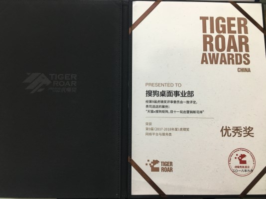 這已經(jīng)是搜狗今年拿到的第N個營銷大獎。此前,搜狗憑借《雙十一案例》斬獲了第九屆(2017-2018年度)虎嘯獎網(wǎng)絡平臺與服務類優(yōu)秀獎;憑借《榮耀手機案例》和《東風日產(chǎn)新品上市造勢案例》拿下了第六屆TopDigital創(chuàng)新銀獎和銅獎;此外,搜狗還拿下了金成獎、金遠獎等一系列大獎。