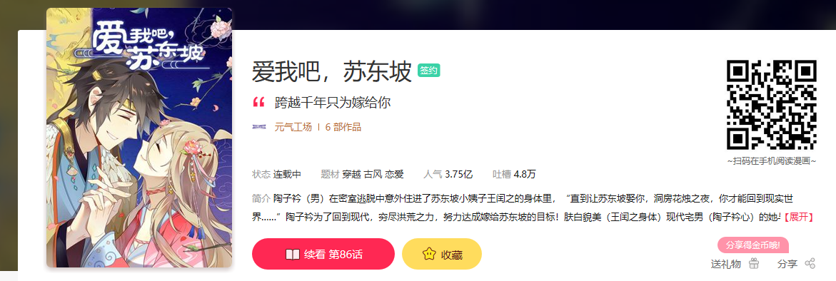 暑期過去一半,輕幻想題材漫畫《愛我吧,蘇東坡》成為大熱門,創(chuàng)下了3.7億次點擊量的同時,更是收獲了良好的口碑。目前正在網(wǎng)易漫畫獨家連載中,每周三、六更新兩期,現(xiàn)已更新至122話。