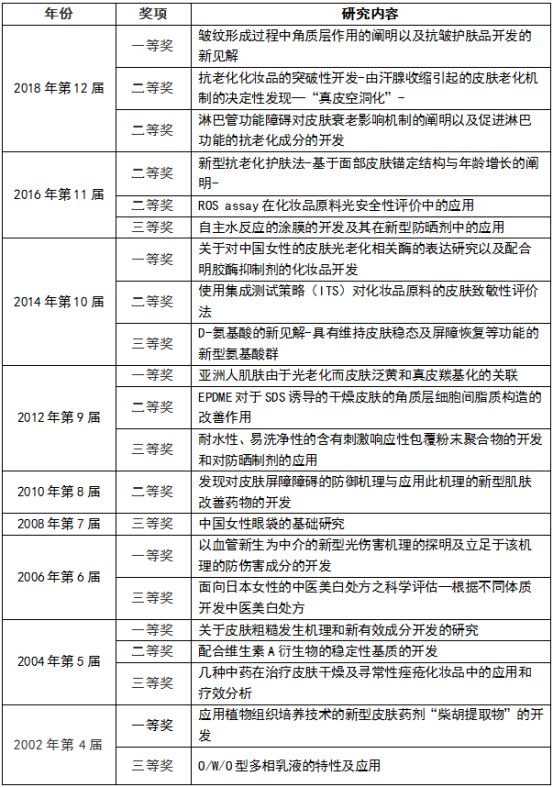 附錄:資生堂集團(tuán)在歷年中國(guó)香料香精化妝品行業(yè)科技大會(huì)中的獲獎(jiǎng)記錄