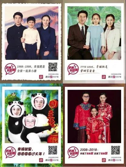 2018年恰逢改革開放四十周年的時(shí)代節(jié)點(diǎn),在這個(gè)別具意義的春節(jié),全家福H5更仿若一臺時(shí)光機(jī)器,讓時(shí)間倒流四十年,提供各種不同時(shí)代感的主題選擇——70年代的黑白軍裝、80年代的藍(lán)色滌卡外套、90年代的現(xiàn)代洋裝、新世紀(jì)的華麗中式唐裝,還有搞笑趣味的熊貓主題……見證著40年中國家庭生活的巨大變遷,喚起各個(gè)年齡段家庭成員的時(shí)代回憶和美好故事,也為中國家庭創(chuàng)造了更多跨越代際、除夕圍爐的話題和溫情互動。