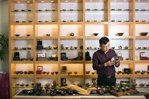 十幾年前,即便在福建,建盞也非大眾產(chǎn)品。當(dāng)時(shí)還在做禮品生意的鄭曉涌,對(duì)工藝品有一種職業(yè)上的敏感,偶然的機(jī)會(huì)在朋友那里看到建盞,當(dāng)時(shí)就著了迷。“藝術(shù)品最重要就是要有感覺(jué),我從第一眼就喜歡上了建盞,馬上從別人手里買(mǎi)了幾只?!眲傞_(kāi)始,鄭曉涌考慮把建盞當(dāng)成禮品來(lái)運(yùn)營(yíng),但隨著了解的深入,他覺(jué)得不應(yīng)止步于此。