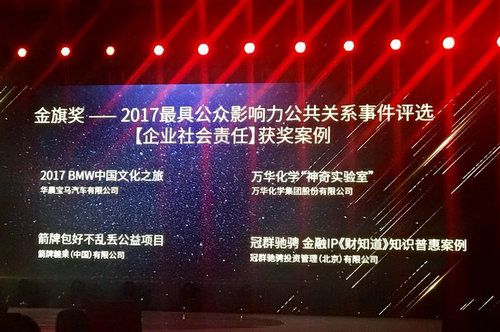 金旗獎(jiǎng)作為當(dāng)前在中國傳播行業(yè)最為專業(yè)的獎(jiǎng)項(xiàng)之一,其含金量與影響力歷來受到眾多企業(yè)及相關(guān)團(tuán)隊(duì)競(jìng)相角逐。11月24日,首屆公共關(guān)系與全球化傳播高峰論壇暨2017金旗獎(jiǎng)?lì)C獎(jiǎng)盛典在京舉行。國內(nèi)領(lǐng)先綜合金融及資源整合服務(wù)平臺(tái)冠群馳騁受邀出席,并憑借獨(dú)家出版的金融IP《財(cái)知道》視頻案例,斬獲本次金旗獎(jiǎng)“企業(yè)社會(huì)責(zé)任金獎(jiǎng)“獎(jiǎng)項(xiàng)。
