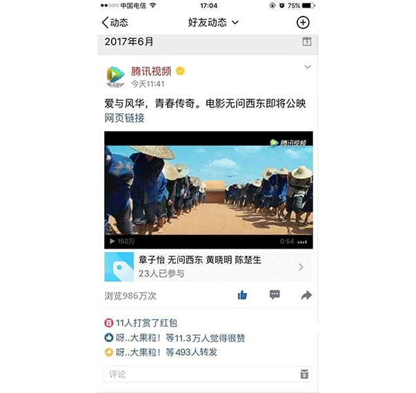 電影IP也開始涉足QQ空間這一年輕人主陣地。此次《無問西東》用極具年代感的“青春”對話當(dāng)下新潮正當(dāng)時的“青春”,通過投放影片首支預(yù)告,這場青春碰撞迅速帶來了超986萬的總曝光次數(shù),點贊量達(dá)11萬次,鏈接點擊率也超過平均水平,成功吸引觀眾跳轉(zhuǎn)H5進(jìn)行下一步互動,實現(xiàn)多場景的無縫切換。同時,投放結(jié)果顯示,演員陣容是該影片吸引平臺用戶的核心因素,并為片方的后續(xù)傳播提供了合理建議,以更好打動觀眾的心。