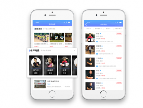 圖說:其中,“名師高徒”板塊,根據(jù)用戶對健身運動的需求程度,將教練按不同的專業(yè)課程分類,滿足用戶多元化的健身目的。