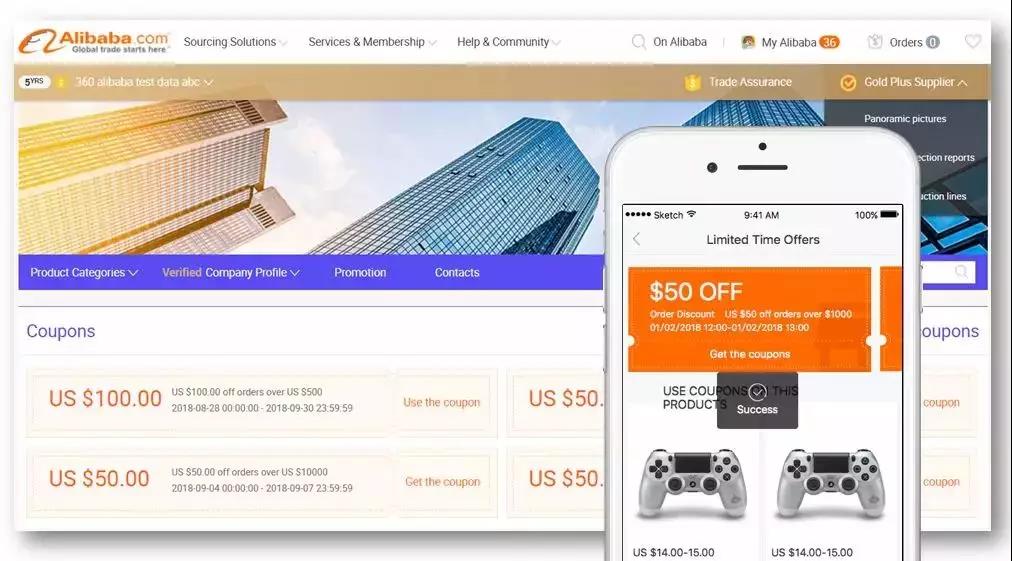 打開My Alibaba網(wǎng)頁后臺,按路徑點擊營銷中心>優(yōu)惠券,就看到以下界面了。