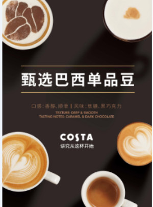 3月起,對于喜歡意式咖啡的消費者,在經(jīng)典摩卡意大利拼配豆的基礎(chǔ)上,COSTA推出了全新甄選巴西單品咖啡豆,此款100%單一產(chǎn)地的阿拉比卡咖啡豆來自巴西塞拉多地區(qū),使用日曬法處理生豆,為咖啡帶來更為甘甜平衡的香氣,使整體口感香醇順滑,并伴隨著迷人的焦糖和黑巧克力風(fēng)味。對于消費者來說,無論是喜歡牛奶比例更高的拿鐵,還是忠實的美式粉絲,都可以在自己喜歡的咖啡中選擇此款單品豆,感受更加講究的單品豆帶來的風(fēng)味變化。