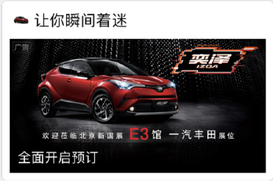 與此同時(shí),一汽豐田奕澤IZOA還在線上打造了一場別出心裁的營銷活動(dòng)。4月25日起,當(dāng)用戶使用搜狗輸入法輸入“奕澤”、“豐田”、“車展”等關(guān)鍵詞時(shí),一汽豐田奕澤IZOA的品牌廣告會(huì)實(shí)時(shí)呈現(xiàn)在用戶前面,為感興趣的用戶提供一鍵直達(dá)的快捷入口。