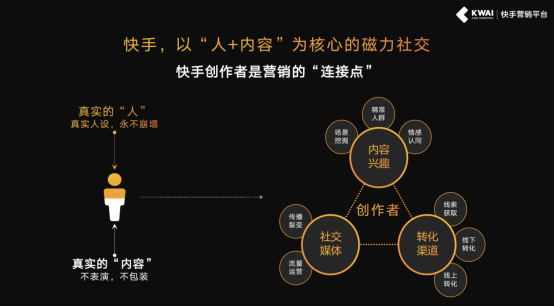 有數(shù)據(jù)顯示,目前快手DAU超過2億,日均視頻播放次數(shù)超200億,每天點(diǎn)贊數(shù)超過4億。依托國民級(jí)的“人”流量,快手搭建了“社交+”的營銷模型,將社交基因與人、內(nèi)容、商業(yè)有機(jī)融合,形成“營銷一體化”的行業(yè)解決方案,而“人+內(nèi)容”為核心的社交磁力引擎與品牌“人貨場”營銷價(jià)值互相疊加、互為增長。