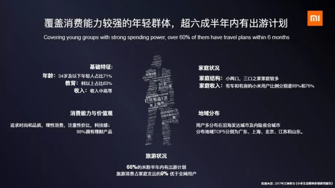 陳高銘指出:“很多消費(fèi)決策來自家庭”。小米的數(shù)據(jù)與行業(yè)有共鳴。在移動端,近30天,米粉使用旅游類APP和搜索旅游信息的用戶超過3887萬。另一方面,以覆蓋家庭為主的OTT,超六成的用戶有出游計(jì)劃。