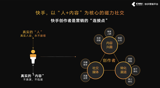 有數(shù)據(jù)顯示,隨著快手商業(yè)再加速,目前DAU超過2億,日均視頻播放次數(shù)超200億,每天點(diǎn)贊數(shù)超過4億。依托國(guó)民級(jí)的“人”流量,快手搭建了“社交+”的營(yíng)銷模型,將社交基因與人、內(nèi)容、商業(yè)有機(jī)融合,形成“營(yíng)銷一體化”的行業(yè)解決方案,而“人+內(nèi)容”為核心的社交磁力引擎與品牌“人貨場(chǎng)”營(yíng)銷價(jià)值互相疊加、互為增長(zhǎng)。
