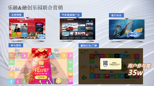 不久前,樂融與融創(chuàng)樂園進行了聯(lián)合營銷。用戶登錄電視端活動頁面,可玩類似大富翁的游戲,通過擲骰子觸達一些福利。比如用戶可以獲得本地區(qū)融創(chuàng)樂園的門票。