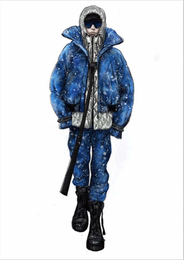 在藝術與設計的高端平臺之上,波司登展出的走秀款也獨具特色。此次米蘭時裝周,波司登秀款汲取意大利國寶級藝術家、“星空制造者”“繪畫界的莫扎特”奧塔維奧·法布里所創(chuàng)作的《星空》為靈感來源。從波司登透露的一張設計手稿來看,秀款的設計要點突出款式設計的休閑時尚、色調(diào)搭配的精致、廓形的收放有致、裁剪線條的利落摩登,其中潑墨式的銀白星空點綴元素與宣傳海報中的星空相呼應,展現(xiàn)出中國品牌的東方夢幻氣質(zhì)。