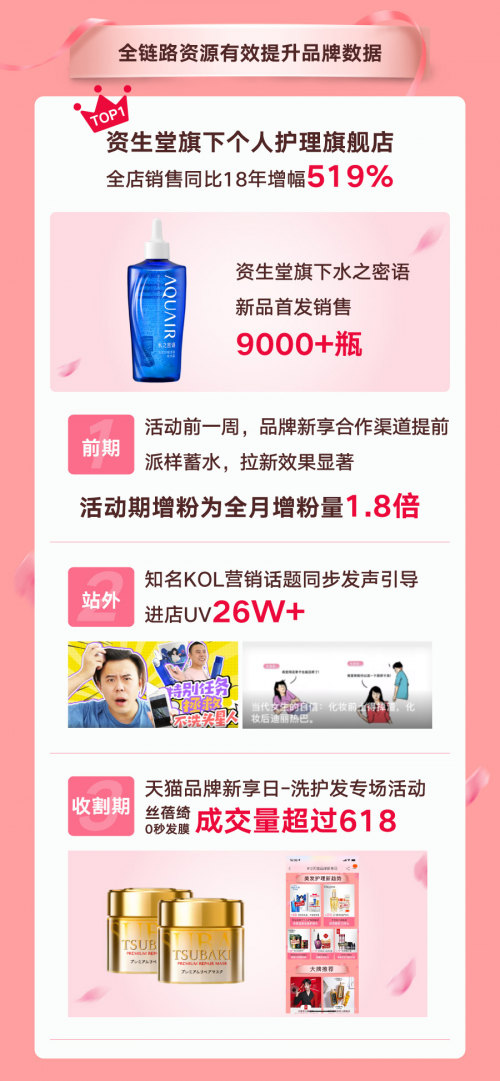 活動(dòng)前期,通過在站外渠道廣泛發(fā)布洗護(hù)發(fā)消費(fèi)趨勢內(nèi)容,品牌新享日不僅向消費(fèi)者傳遞了最新的洗護(hù)發(fā)理念,實(shí)現(xiàn)優(yōu)質(zhì)洗護(hù)發(fā)產(chǎn)品種草,助力洗護(hù)發(fā)品類擊穿;同時(shí)還攜手參與活動(dòng)的品牌商家甄選多品類的洗護(hù)發(fā)產(chǎn)品,為消費(fèi)者提供了最新的一站式洗護(hù)發(fā)解決方案。