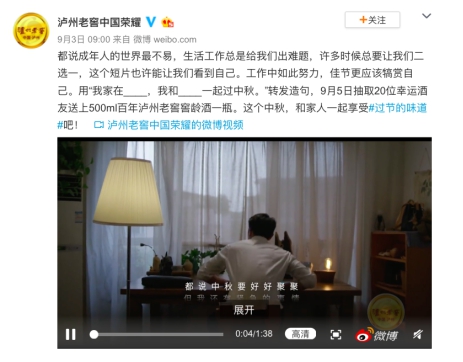 廣告口碑再好,還是要回歸本質(zhì),瀘州老窖中秋營(yíng)銷(xiāo)主要目的還是“送福利”。但區(qū)別于前幾年其他品牌粗暴式,主題簡(jiǎn)單的錦鯉活動(dòng),今年瀘州老窖從漫畫(huà)引發(fā)異鄉(xiāng)人催淚到TCV傳遞的“反轉(zhuǎn)”生活,起承轉(zhuǎn)合式的營(yíng)銷(xiāo),讓人不得不佩服瀘州老窖品牌活動(dòng)露出手法的小心思。