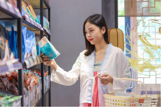 據(jù)良品鋪子相關(guān)負責人介紹:正是受這個粉絲的啟發(fā),想到了將九州里的良品鋪子店鋪再搬到現(xiàn)代。從店鋪招牌,到貨架設(shè)置,休息區(qū)布置,以及劇中人物設(shè)置,都充分運用了九州劇里的元素。據(jù)了解,良品鋪子還與劇方溝通,借到了劇中羽然(替身)的一套日常服飾,在門店進行展示,將影視劇與現(xiàn)實生活的距離拉近,也給了劇粉一個可以體驗的影視劇場景。很多顧客與人形立牌互動拍照,感受自己的古裝造型。