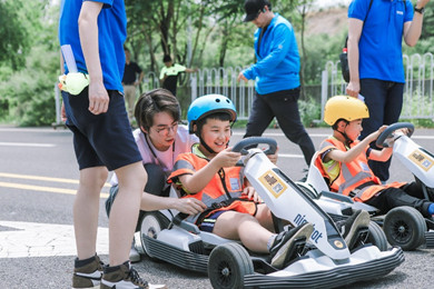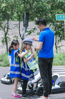 雖然只是短短的一堂課,但是每個細小的流程都經(jīng)過了精心的設(shè)置。課程分為實踐理論兩大類,在講解一系列安全知識:SUV的盲區(qū)、內(nèi)輪差、交通手勢等理論后,邀請嘉賓與孩子們分成小組一起比賽、互動,強化印象;最后志愿者和孩子們在北京警察學(xué)院進行了實地演練,開上卡丁車來一場交通知識大比拼。