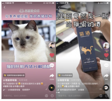 “‘貓酒’我們會(huì)首先保證產(chǎn)品的質(zhì)量,研究它的食物檢測報(bào)告,另外將貓薄荷做成酒,這在市場上、抖音上都是很罕見的,符合抖音平臺(tái)新奇特的點(diǎn)?!必垇砹诉x品總監(jiān)田雪在談到最新選品“貓酒”時(shí)說,“這些綜合起來打動(dòng)了我們,促使我們?cè)偃ド钊肓私膺@個(gè)產(chǎn)品、產(chǎn)品背后的理念?!?/span>