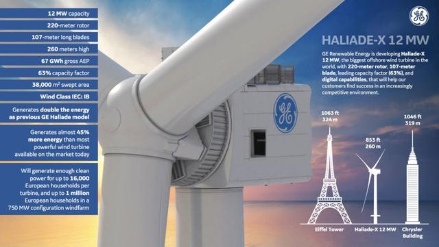 為了提高能源效率,通用開發(fā)的一款風(fēng)力發(fā)電機(jī),高度達(dá)到了 260 米,發(fā)電能力可達(dá) 12 兆瓦,為數(shù)以萬計(jì)的家庭提供電力。