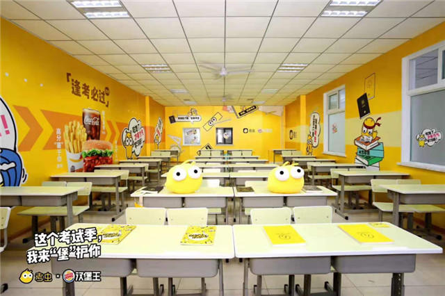 12月1日到12月31日,考蟲 x 漢堡王「逢考必過」餐廳在河北石家莊限時(shí)開業(yè)。漢堡王裕華萬達(dá)店位于大學(xué)附近,整個(gè)門店從里到外裝飾一新,將大學(xué)生「逢考必過」的考試心愿,變成具體可感的場(chǎng)景體驗(yàn)。