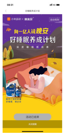 自2019年初,小米營銷通過在小米運動APP米動圈派發(fā)推廣,打造“百萬小時挑戰(zhàn)賽”,發(fā)布“睡眠白皮書”,發(fā)起“睡眠保衛(wèi)戰(zhàn)21天打卡”“睡神挑戰(zhàn)賽”等一系列活動,與用戶建立深刻的睡眠認知。